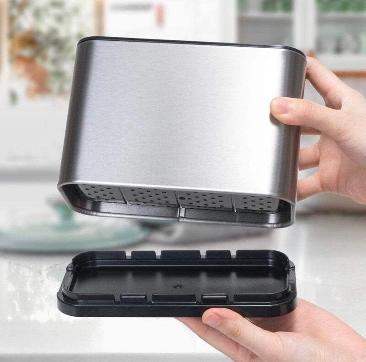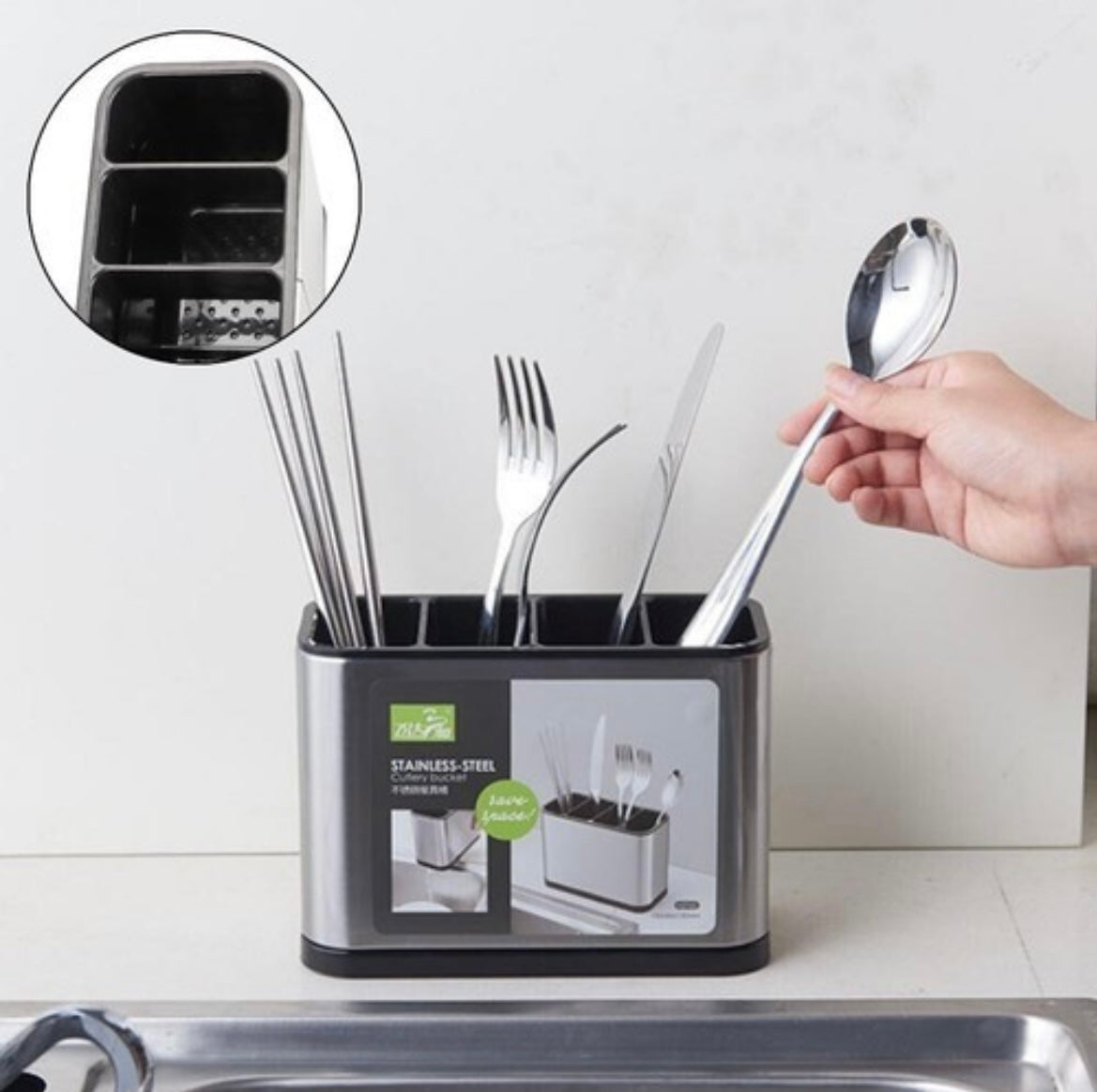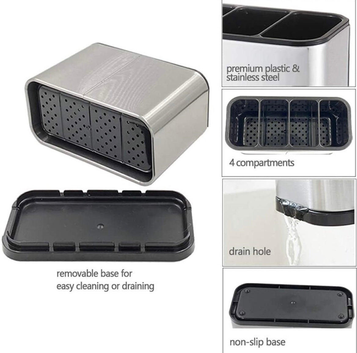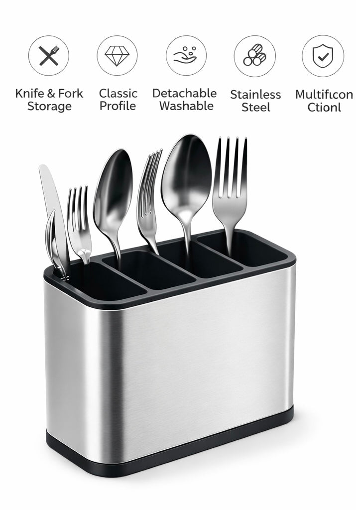 Mantém a tua bancada limpa e organizada com este organizador de talheres em aço inoxidável, ideal para colher, garfo, faca e utensílios de cozinha.