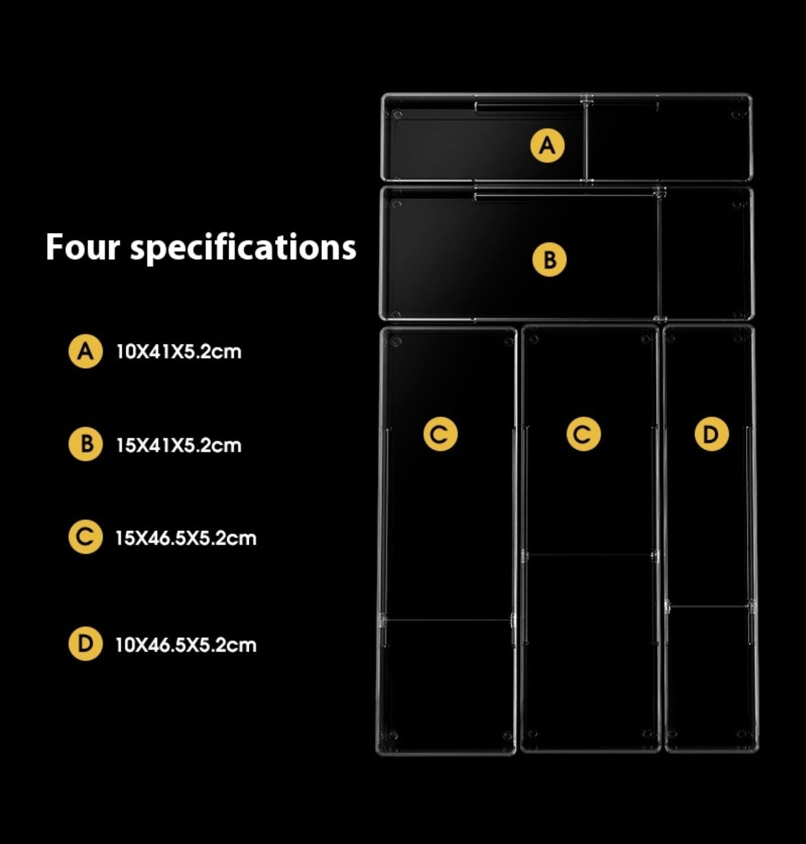 Com design ajustável entre 27 e 51 cm, adapta-se facilmente a diferentes tamanhos de gavetas. Possui vários compartimentos ideais para colheres, facas, garfos e utensílios maiores.